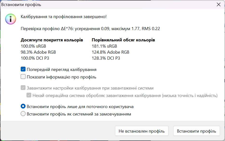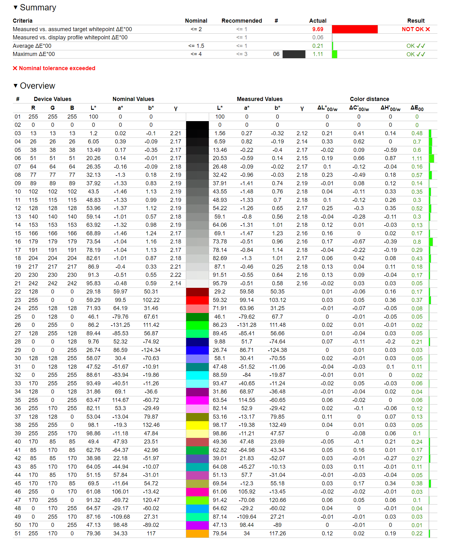 Средняя DeltaE меньше 1, но для более точного отображения цветов калибровки все равно не помешает.