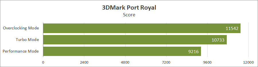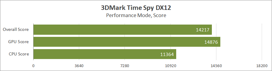 Потребление дискретной видеокарты не превышало 90 Вт, частота колебалась в диапазоне 975–1305 МГц, температура ядра не поднималась выше 75 градусов, память была на уровне 84 °C. Уровень шума — 42,2 dB(A) максимум.
