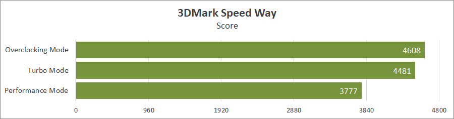 При включении Turbo-режима лэптопа в Armoury Crate частота чипа возрастает до 980 МГц с ускорением до 1505 МГц, а память уже начинает функционировать с быстродействием в 18200 ГТ/с.