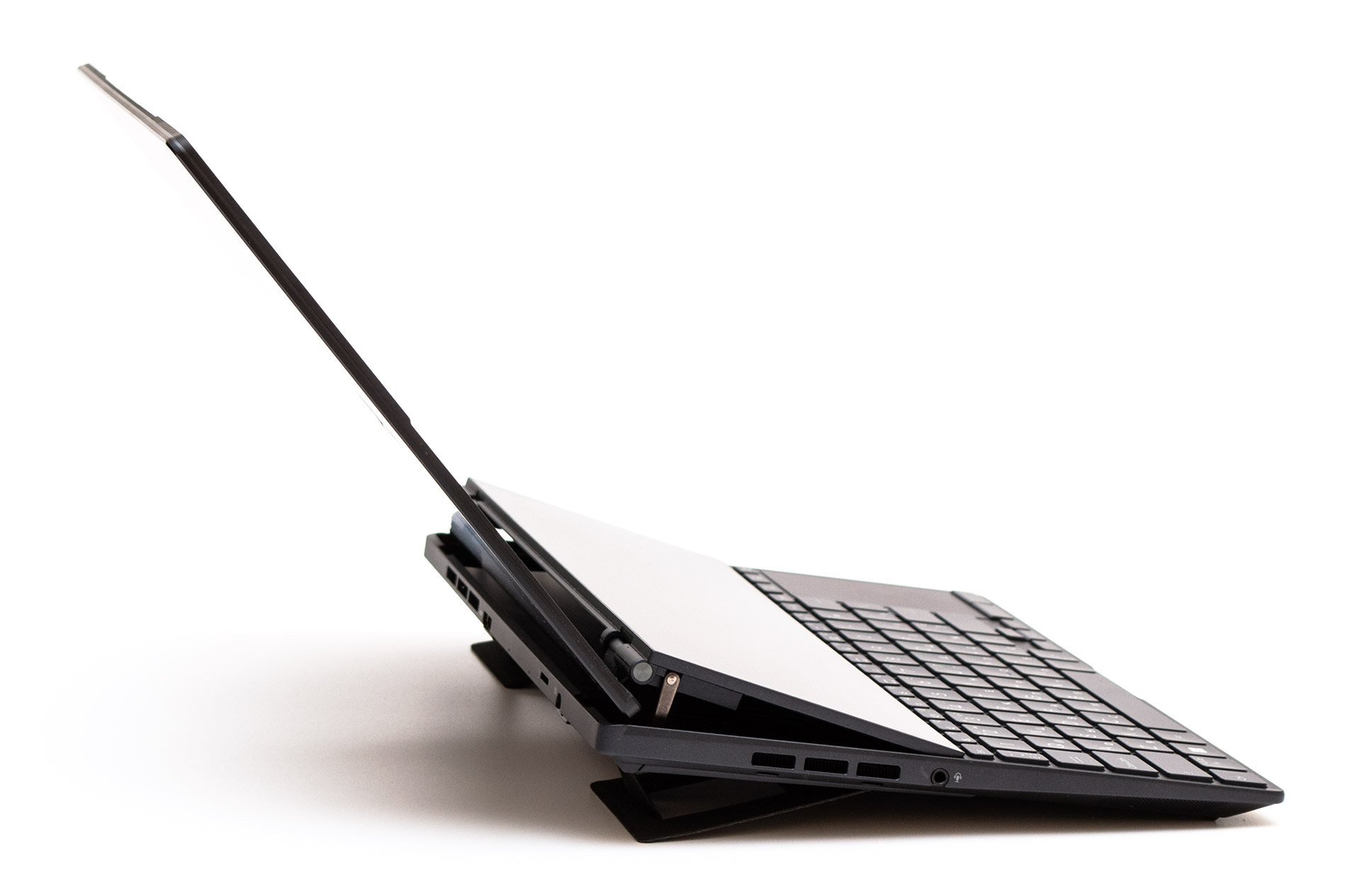 Кроме того, разложенные ножки улучшают углы обзора дополнительного дисплея и создают эргономичный наклон для клавиатуры.