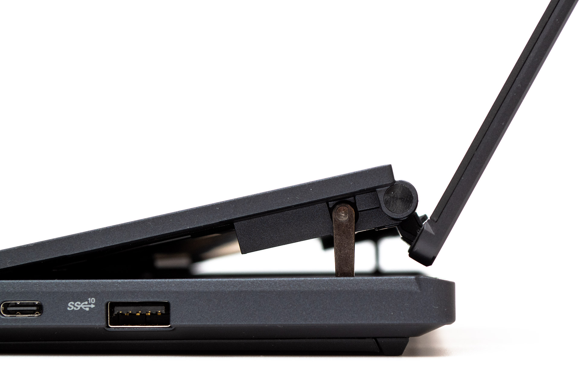 По свидетельству производителя, конструкция шарнирного узла на 38% улучшает возможности системы охлаждения устройства, пропорциональным образом создавая запас для увеличения рамок теплового пакета процессора и видеокарты, а значит соответствующего их ускорения при отсутствии перегрева. Обратным недостатком системы является возможность случайного попадания посторонних предметов между корпусом и дисплеем. За этим нужно следить при закрывании крышки ноутбука.