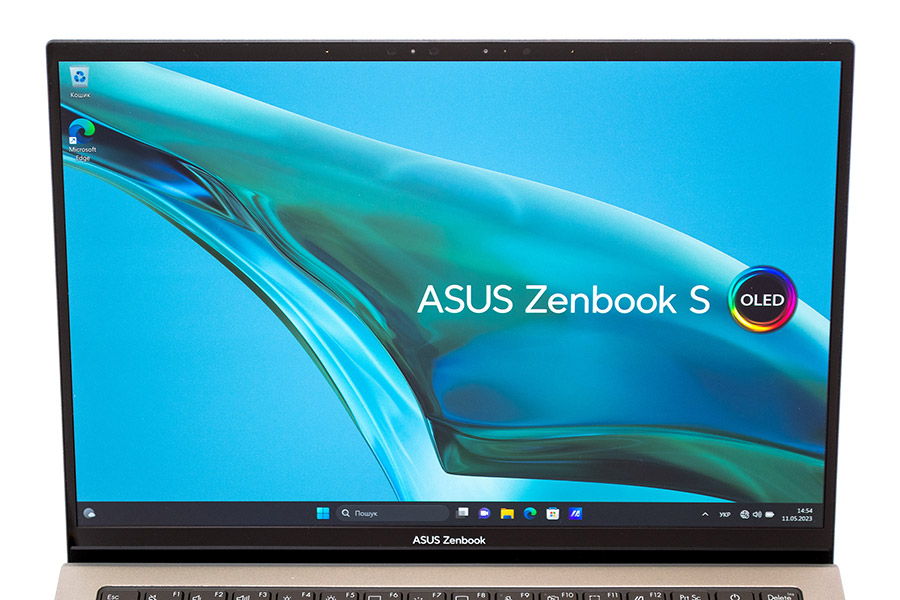 Глянцевый экран ASUS Zenbook S 13 OLED имеет маркетинговое название ASUS Lumina OLED и формат 13,3" (285х178 мм) с поддержкой HDR и близкими к горизонтали углами обзора. Частота обновления кадров составляет 60 Гц. Использование технологии OLED компенсирует глянцевое покрытие дисплея за счет высокой яркости. Все, что изображено на мониторе, видно при любом освещении, со всех сторон под всеми углами и без искажения цветов. Экран имеет сертификаты VESA DisplayHDR True Black 500 и PANTONE за точность передачи цветов, Dolby Vision, TUV Rheinland за уменьшенный на 70% уровень вредного для зрения синего света. Заявлен охват 100% цветового пространства DCI-P3, контраст 1 000 000:1 и 550 кд/м² максимальной яркости.