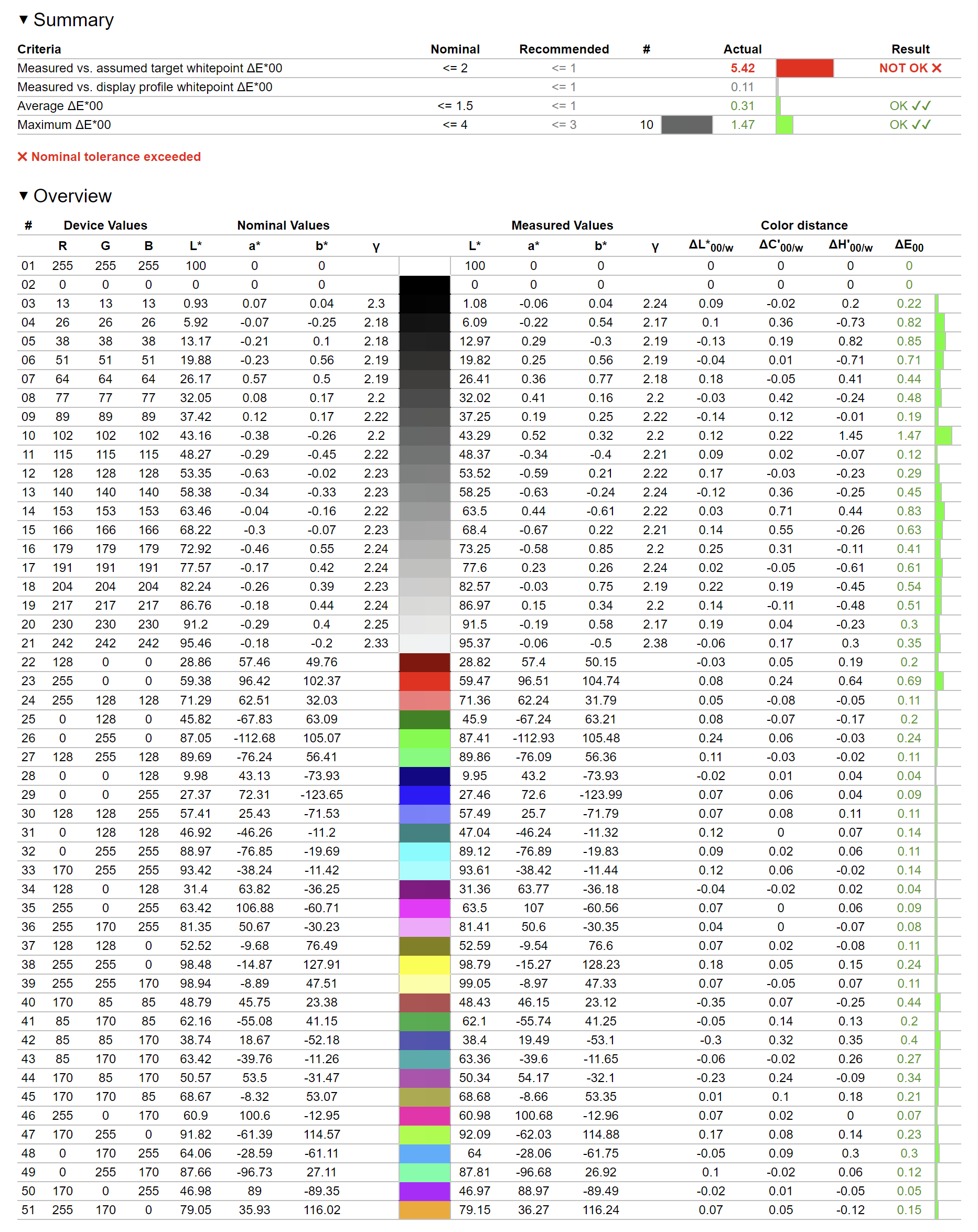 Цветовая температура колеблется от 6500К до 6800К в зависимости от яркости. Отклонение гамма-кривых незначительно.