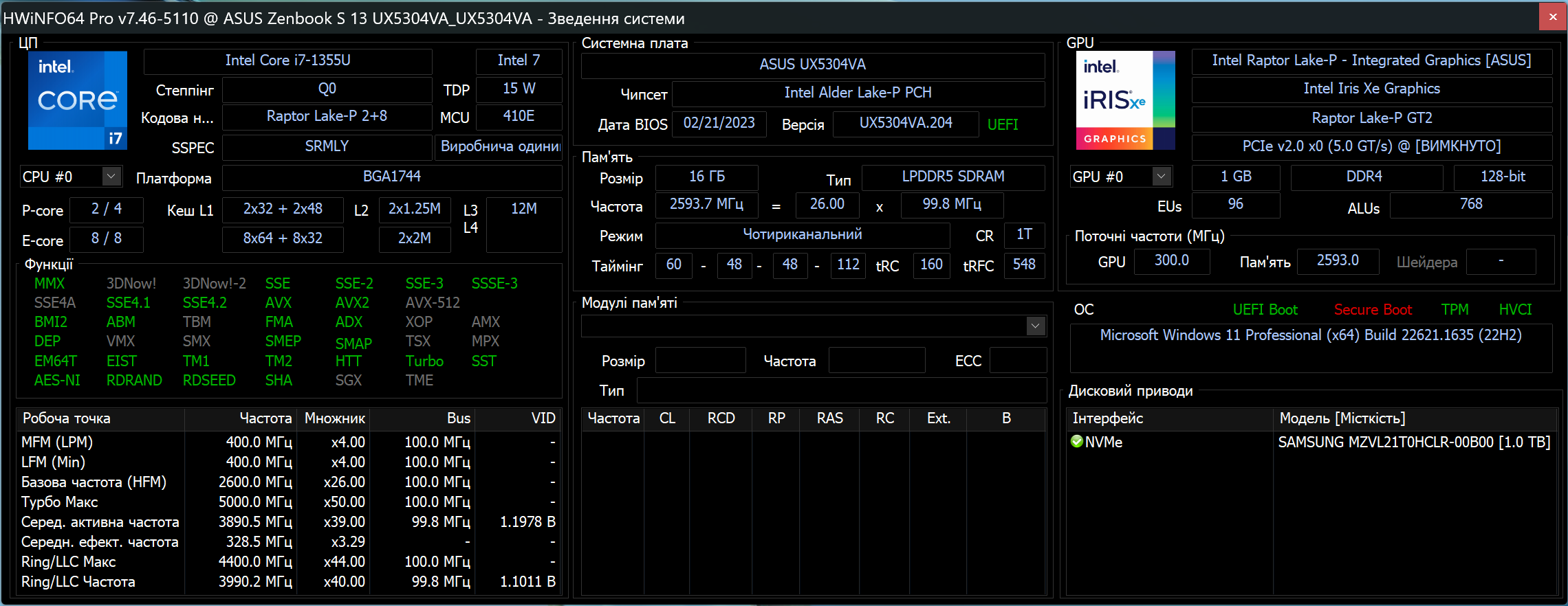 | Модель и страница продукта | Zenbook S 13 OLED (UX5304VA-NQ083) |