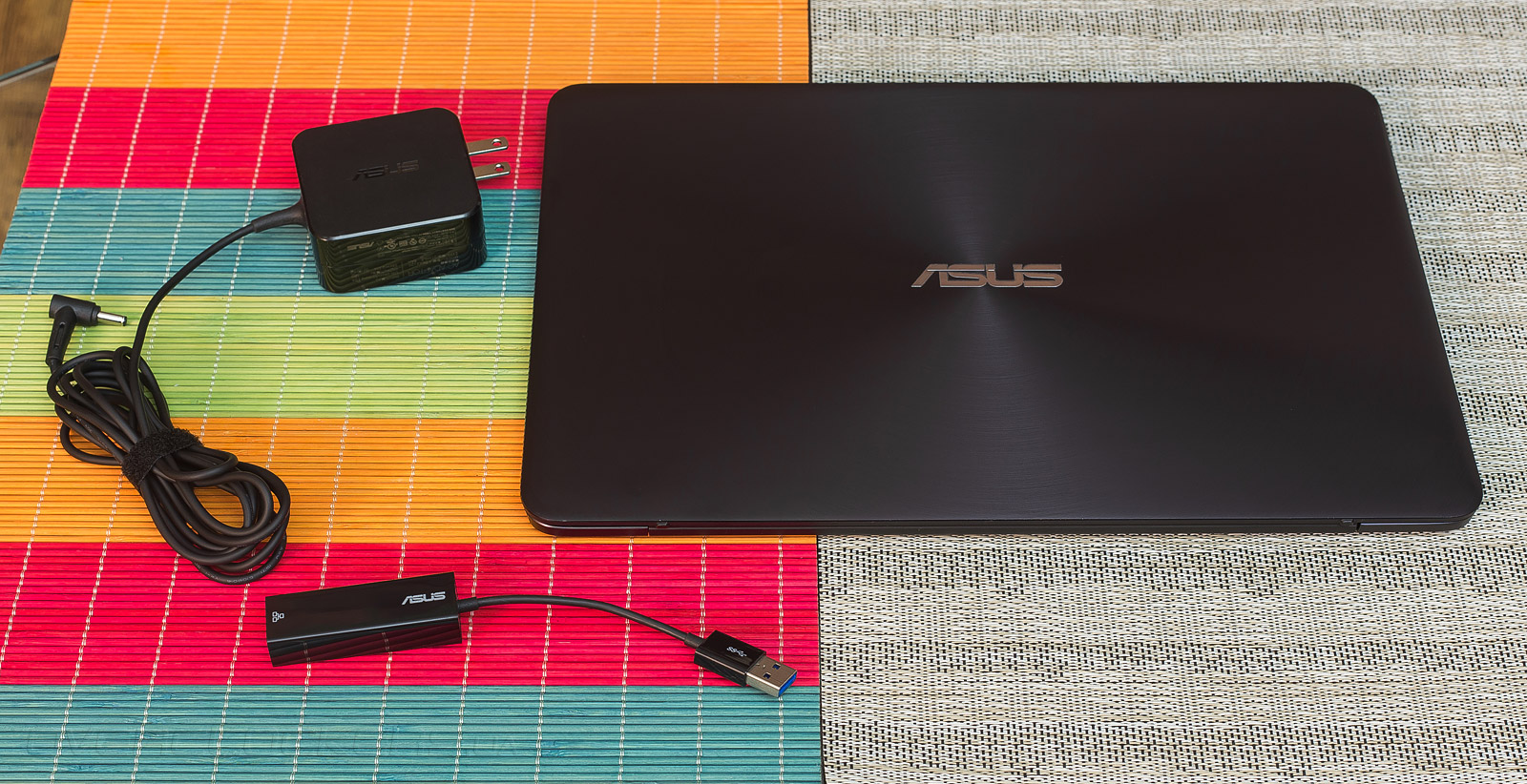 К нам в лабораторию попал тестовый семпл устройства, в комплект поставки которого вошли только адаптер питания (длина кабеля 2,2 метра) и переходник USB–RJ-45. Розничный вариант поставки будет дополнительно укомплектован фирменным кожаным чехлом, для удобства транспортировки лэптопа в процессе эксплуатации.