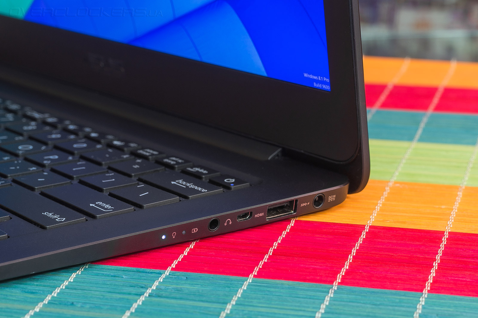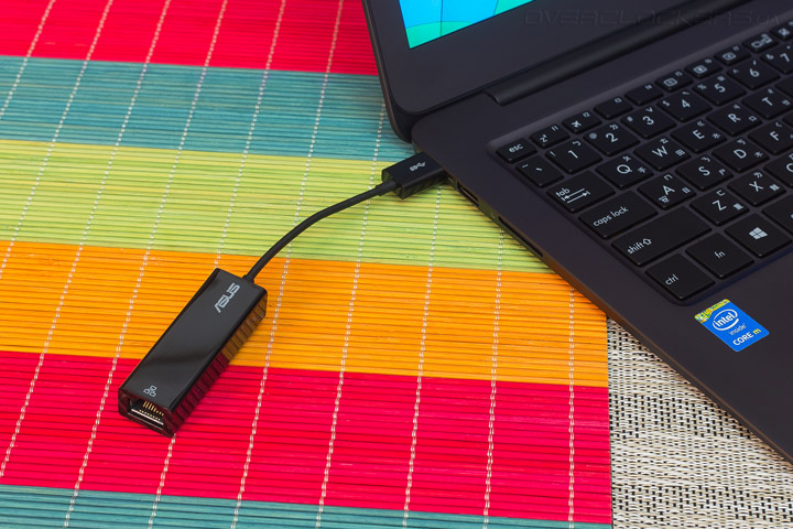 Присутствие адаптера для подключения кабельного интернета обусловлено толщиной корпуса ASUS Zenbook UX305FA. Он попросту тоньше, чем высота порта RJ-45. В месте крепления экрана лэптоп занимает всего 12,3 мм в высоту, что меньше упоминавшегося ранее Apple MacBook 12″.