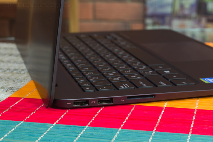 В отличие от некоторых решений конкурентов, незначительная толщина корпуса не стала преградой для обеспечения необходимого набора портов подключения. На правой грани расположились разъем адаптера питания, порт USB 3.0 с функций быстрой зарядки, micro HDMI, 3,5 мм вход для наушников и пара световых индикаторов.