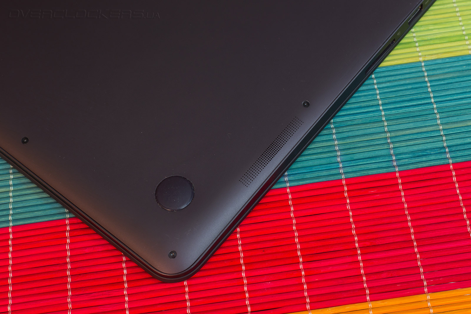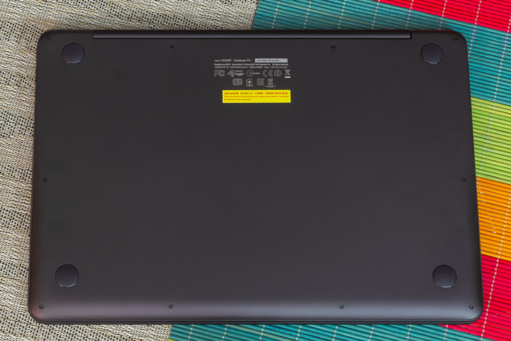 Для придачи лэптопу устойчивости в нижней части корпуса разместились четыре круглые прорезиненные ножки. Дополнительно они защищают алюминиевую поверхность днища от возможных царапин. Нашлось место и для двух перфораций, расположенных над динамиками в крайней правой и левой части корпуса. Несмотря на малую толщину, ультрабук удалось оснастить полноценной стереосистемой с возможностями работы которой мы познакомимся в ходе дальнейшего тестирования.
