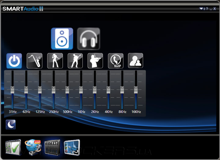 Программа SmartAudio представляет собой центр настройки аудиосистемы и микрофона в красивой графической оболочке. Помимо регулировок громкости работы устройств, в закладках утилиты можно найти привычный эквалайзер с целым рядом готовых предустановок, возможность конфигурации подключаемых гаджетов (например, наушников или гарнитуры) и раздел активации вспомогательных функций подавления шумов.