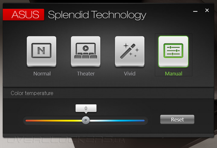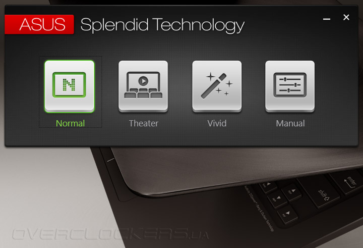 Наиболее интересным приложением однозначно можно назвать ASUS Splendid Technology, созданное для настройки цветопередачи и контрастности дисплея. Помимо выбора из нескольких заготовленных пресетов, владелец Zenbook UX305FA может перейти в закладку Manual, где вручную откорректировать цветовую температуру экрана.