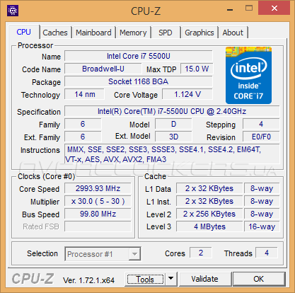 | Процессор | Intel Core i7-5500U, 2400 MГц (до 3000 МГц в режиме Turbo Boost) |