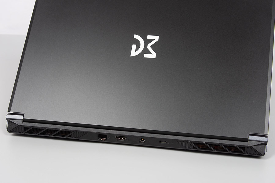 Все остальные порты и разъемы, которые используются редко или могут мешать при работе с ноутбуком, разработчик перенес на заднюю часть устройства. Здесь между решетками сопел системы охлаждения разместились сетевой порт, HDMI, разъем для подключения блока питания и USB 3.2 Gen2 Type-C с поддержкой DisplayPort.