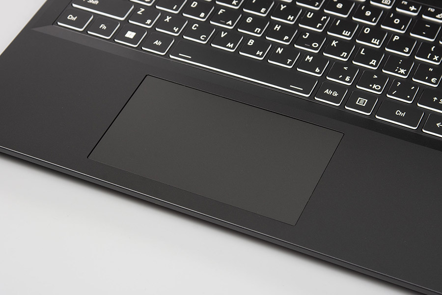 Тачпад широкий, с двумя кнопками, занимает треть площади поверхности для ладоней.
