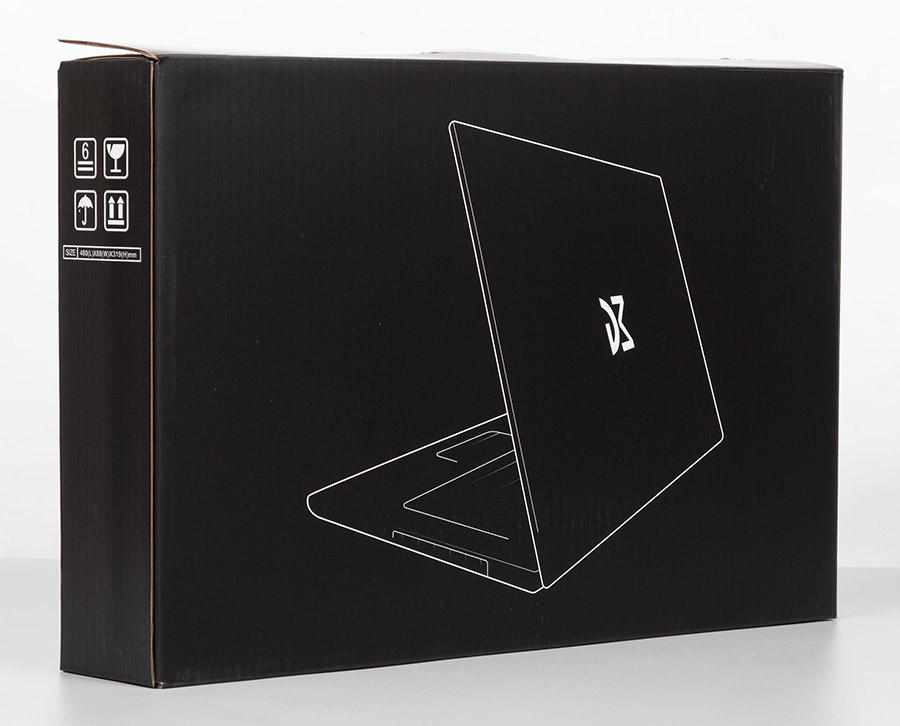 Ноутбук поставляется в большой черной коробке. Для облегчения процесса переноски сверху есть пластиковая ручка.