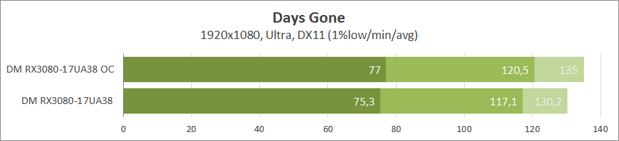 С Dream Machines RX3080-17UA38 можно рассчитывать на максимальные настройки графики даже в максимальном разрешении.