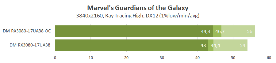 Отличные показатели в данной игре, включая высокое разрешение 4K. Ускорение от разгона около 5%.