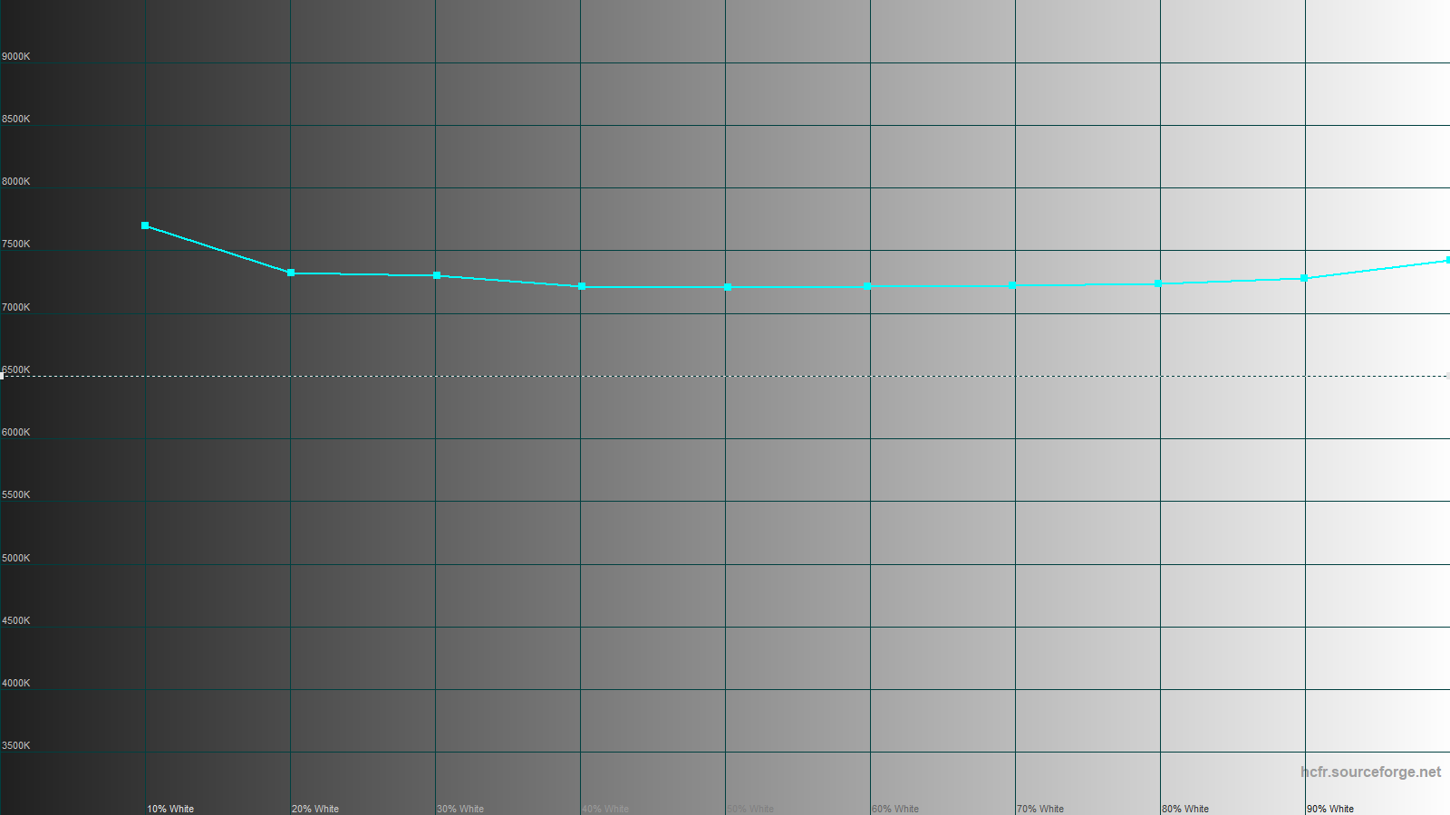 Согласно измерениям результаты матрицы трудно назвать выдающимися. Охват цветового пространства sRGB составляет 55%, Adobe RGB — 39%. Цветовая температура около 7200К, что не сильно отличается от оптимального значения, но общая гамма немного сдвинута в сторону холодных цветов.