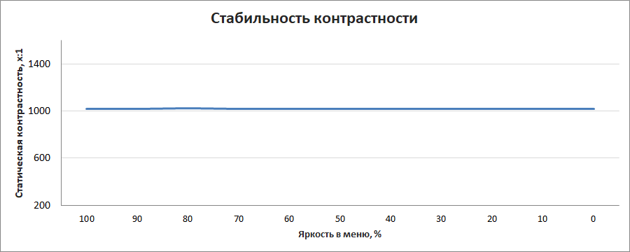 Яркость регулируется в диапазоне от 33 до 254 кд/м². Коэффициент контрастности стабилен на уровне около 1120:1.