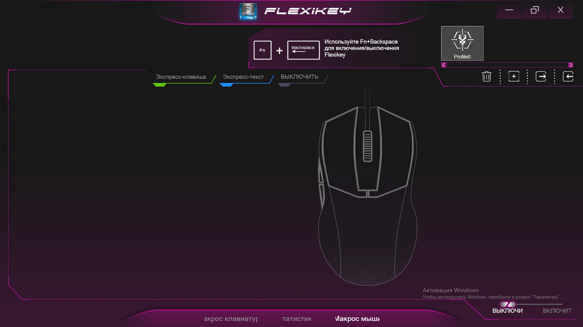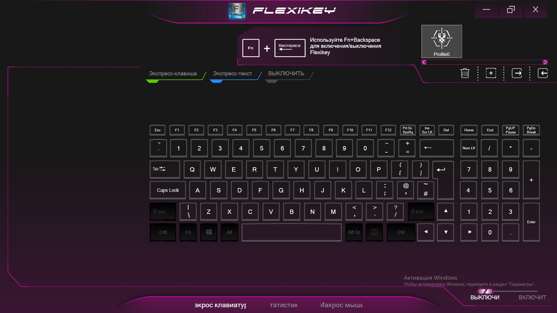 В разделе Flexikey можно менять назначение клавиш клавиатуры и мыши, поддерживаются макросы.