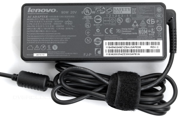 Источник питания рассчитан на мощность до 90 Вт. На выходе блока кабель изогнут буквой Г. Есть длинная «липучка» для фиксации смотанного кабеля.