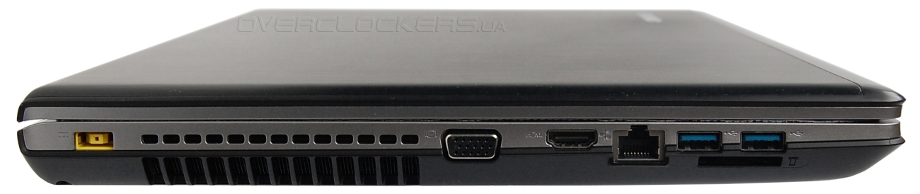 Выдув отработанного горячего воздуха осуществляется через решетку на левом боку ноутбука. Никаких вентиляционных отверстий в тыловой части, за экраном, нет.