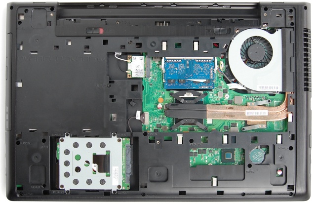 Пора взглянуть на «внутренности» Lenovo Z710 и подробно поговорить о его технических характеристиках. Сняв нижнюю крышку корпуса мы получаем доступ к основной плате и жесткому диску.