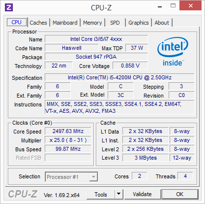 | Процессор | Intel Core i5-4200M 2,5 ГГц (до 3,1 ГГц в режиме Turbo Boost) |