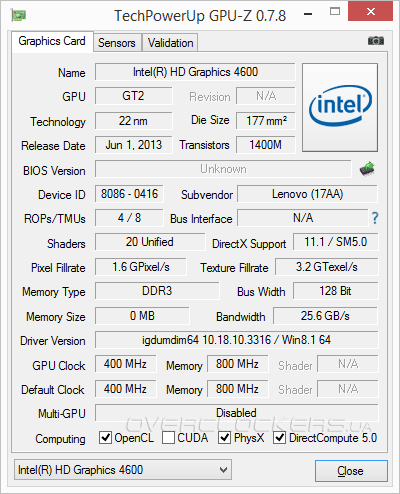 | Видеокарта | GeForce GT 740M, Intel HD Graphics 4600 |