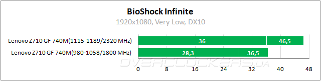 В BioShock Infinite три раза прогонялся встроенный тест производительности. Графика в режиме «очень низко» (Very Low).