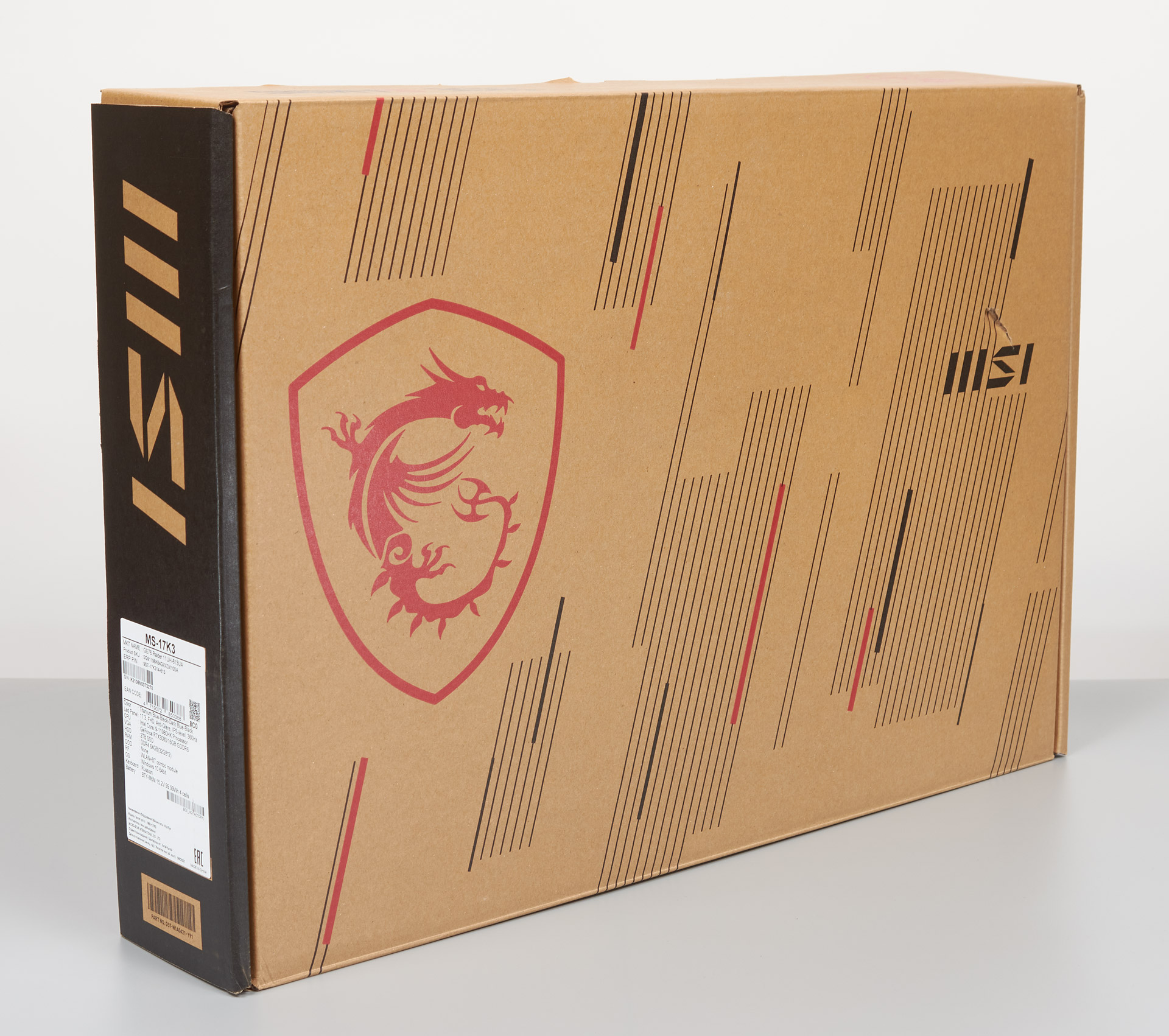 MSI GE76 Raider 11UH поставляется в картонной коробке. На боковой стороне присутствует знакомый логотип в форме дракона.