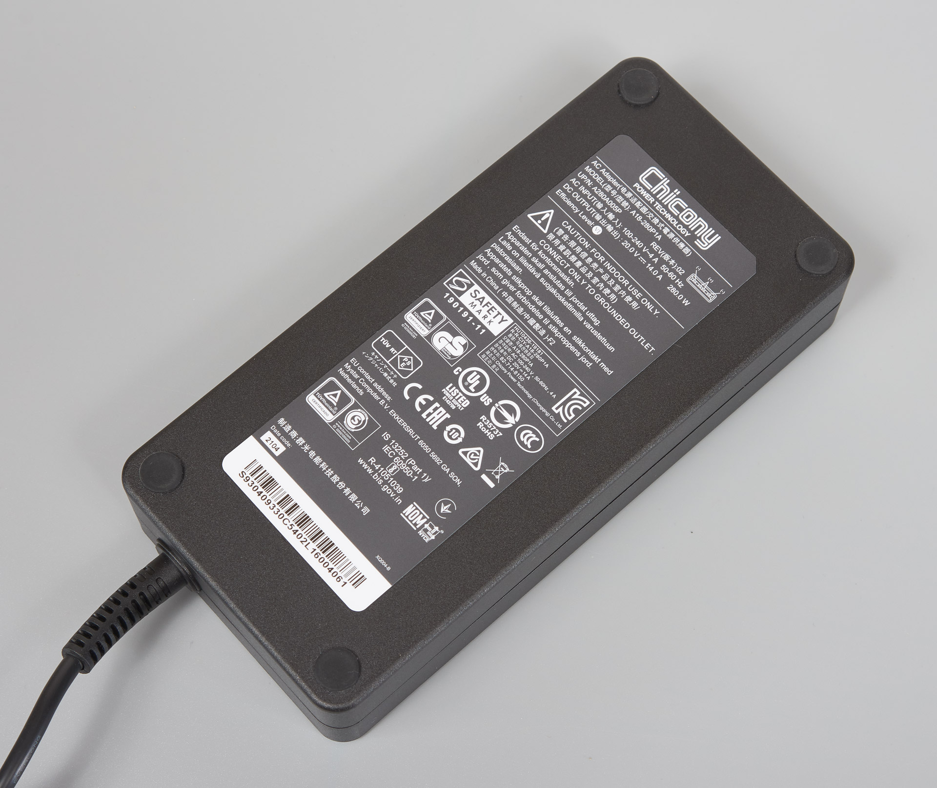 Источник питания Chicony A18-280P1A рассчитан на нагрузку в 280 Вт.