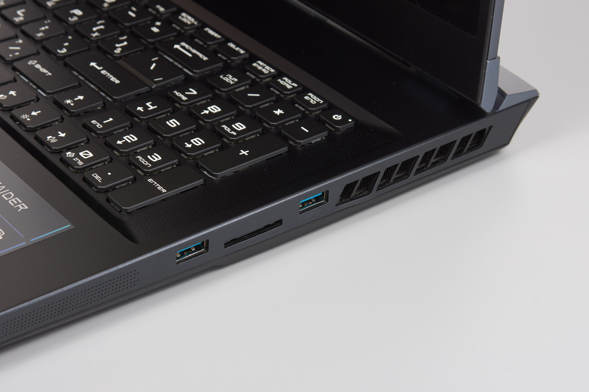 На правый бок вынесено два разъема USB 3.2 Gen.1. Есть картридер, чего лишены некоторые современные ноутбуки.