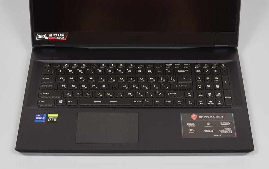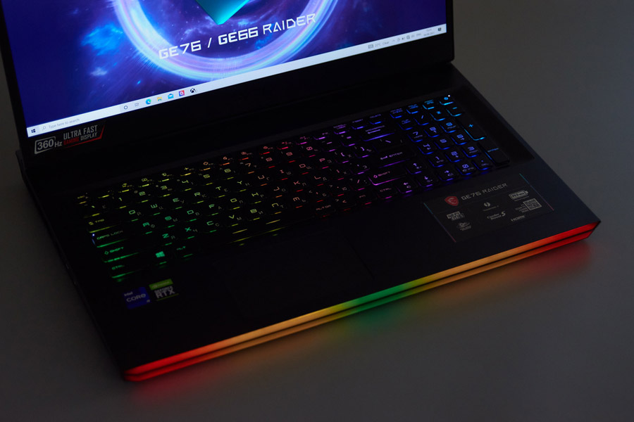 Кроме того, он оснащается большим 17-дюймовым экраном с разрешением Full HD (1920x1080) и впечатляющей частотой обновления 360 Гц. В рамках серии GE76 Raider 11UH есть варианты с разрешением 2560x1440 и частотой 165 или 240 Гц. Также предусмотрен вариант с экраном 4K 3840x2160 и частотой 120 Гц. Большее разрешение удобно для работы с профессиональными приложениями, но с точки зрения игрока сочетание 17 дюймов, разрешения 1920x1080 и максимальной частоты является оптимальным решением.