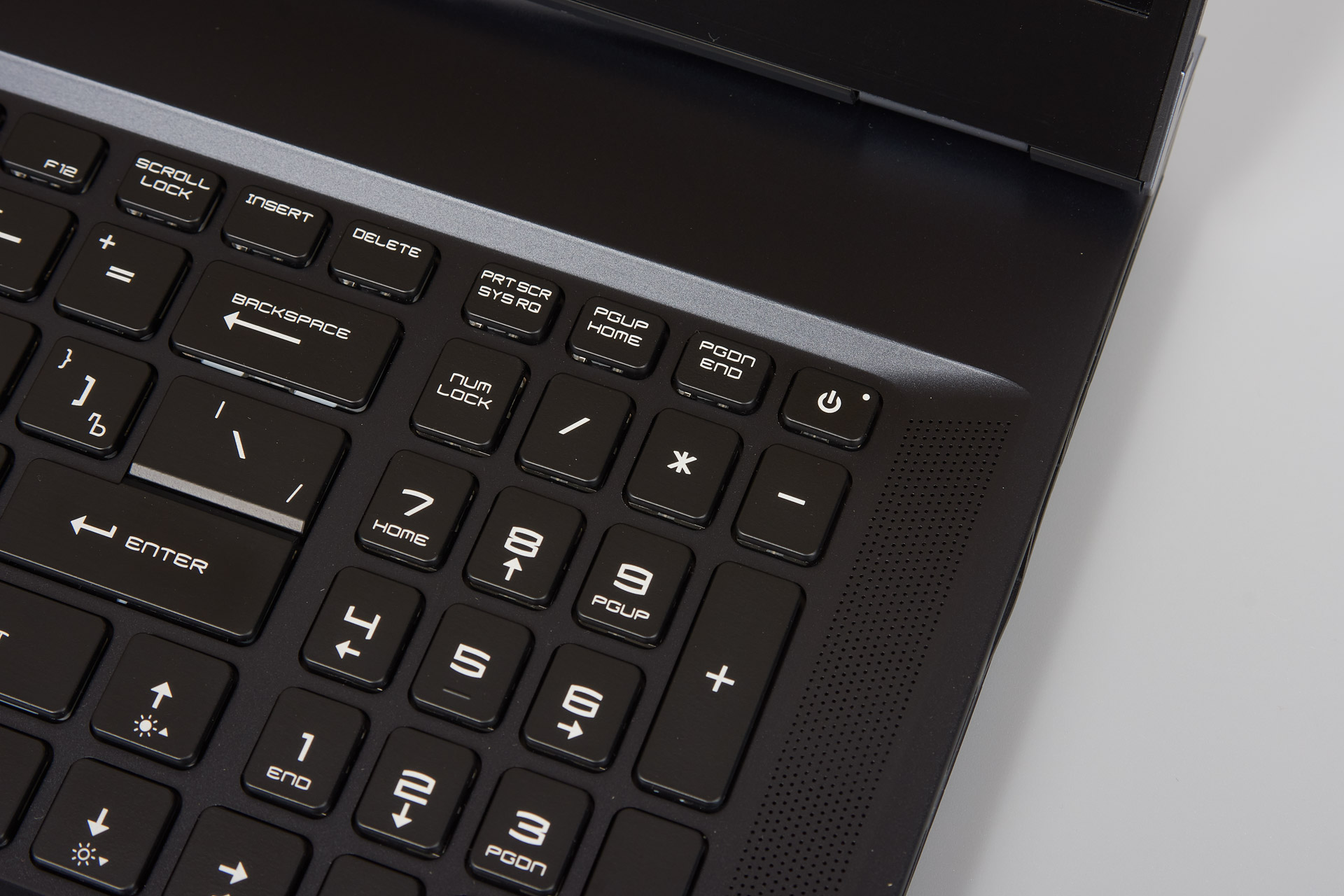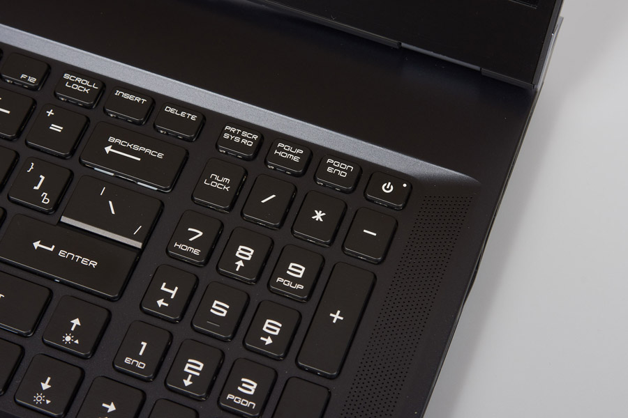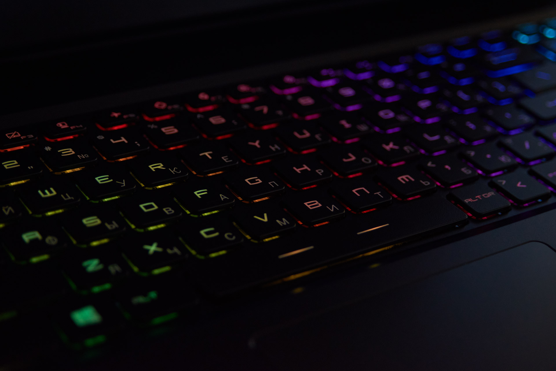 Реализована полноценная RGB-подсветка клавиатуры с разными эффектами и возможностями индивидуальной настройки для каждой клавиши. Яркость подсветки на том уровне, когда хорошо видны все символы, но свечение не создает лишние блики на экране и не бьет в глаза.