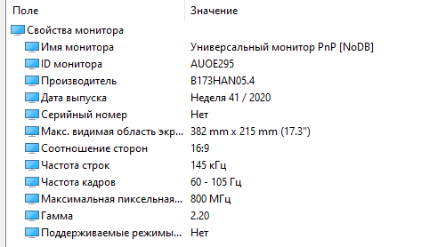 | Дисплей | 17,3", 1920x1080, 360 Гц (AUO B173HAN05.4) |