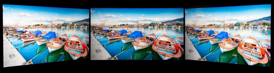 Нет засветов и искажений при отклонении относительно плоскости экрана. AHVA обладает такими же большими углами обзора в 178°, что и матрицы IPS. Мерцание отсутствует.