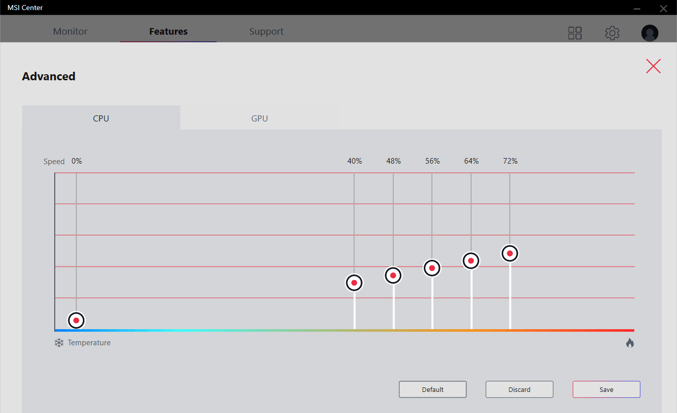 Режим User позволяет гибко настроить скорость вентиляторов для охлаждения процессора и графики. Крайне полезная функция — можно сохранить комфортный режим для простых сценариев (веб-серфинг и т.п.), улучшив охлаждение для пиковых температур, что связано с высокой нагрузкой.