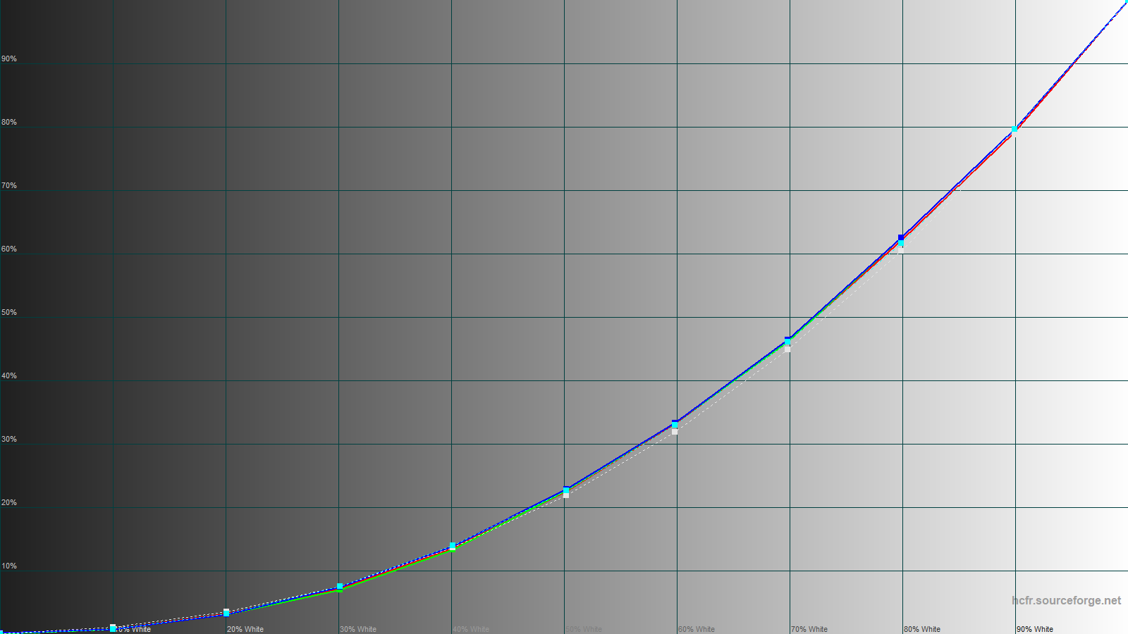 Экран хорошо откалиброван и показывает высокую точность цветопередачи. Средний коэффициент отклонения DeltaE на уровне 1 единицы, а максимальный около 3.