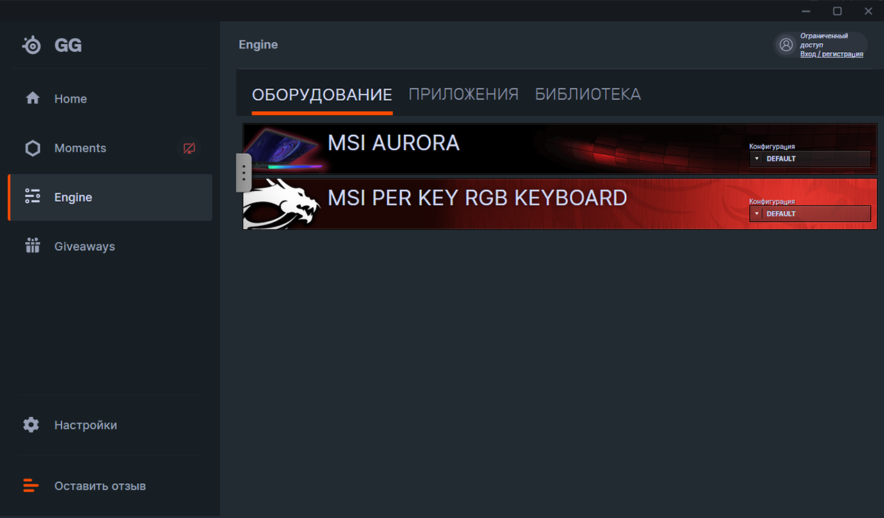 Для управления подсветкой используется приложение SteelSeries GG, в котором есть отдельные вкладки с настройками подсветки клавиатуры и передней панели.