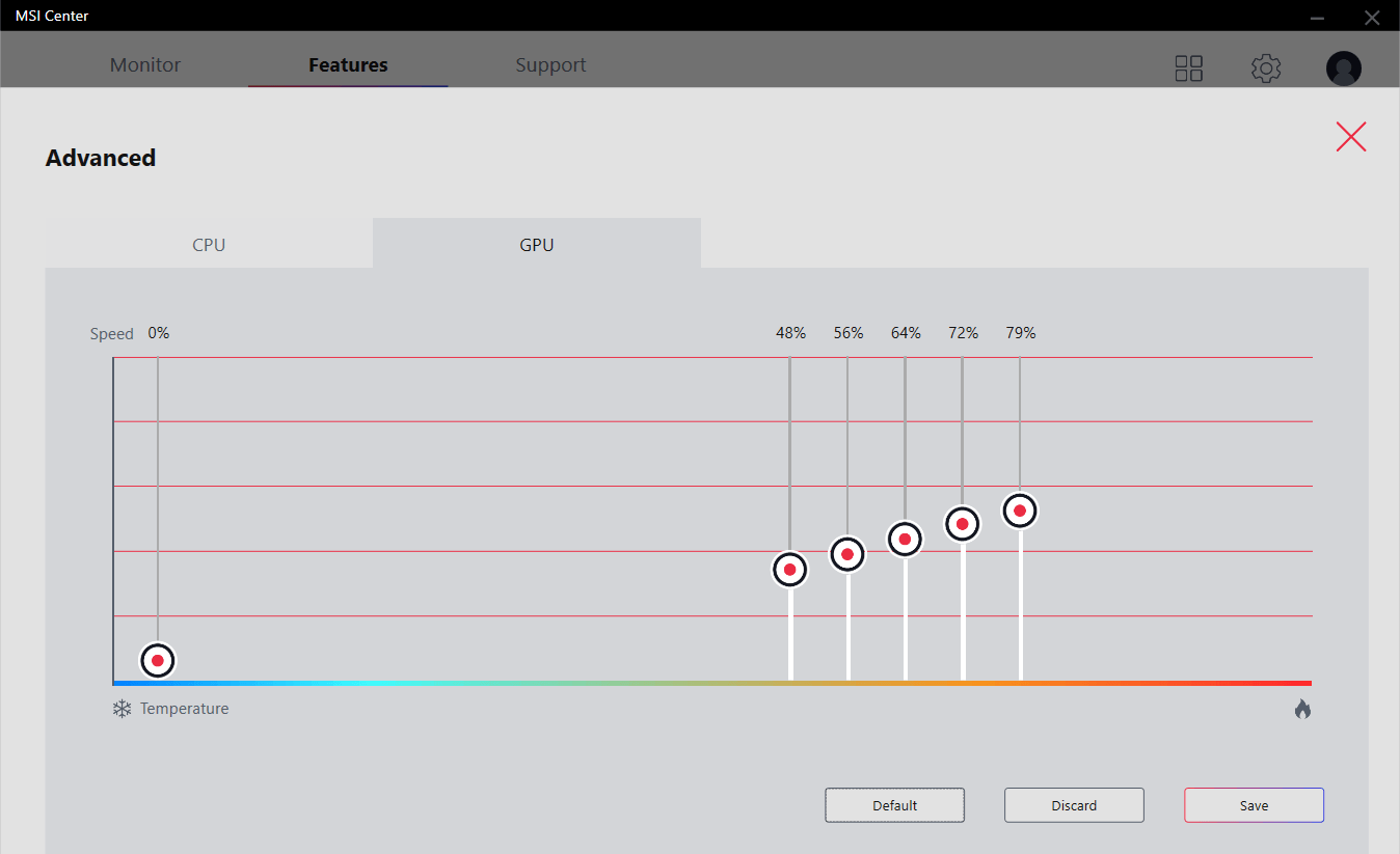 Режим User позволяет гибко настроить скорость вентиляторов для охлаждения процессора и графики. Крайне полезная функция — можно сохранить комфортный режим для простых сценариев (веб-серфинг и т.п.), улучшив охлаждение для пиковых температур, что связано с высокой нагрузкой.