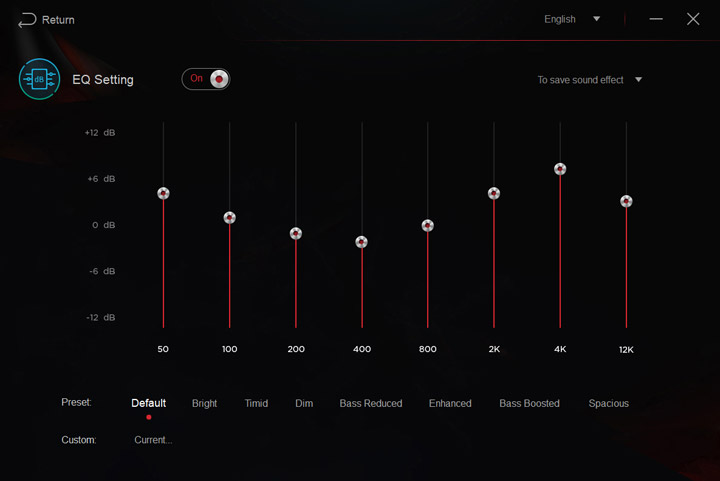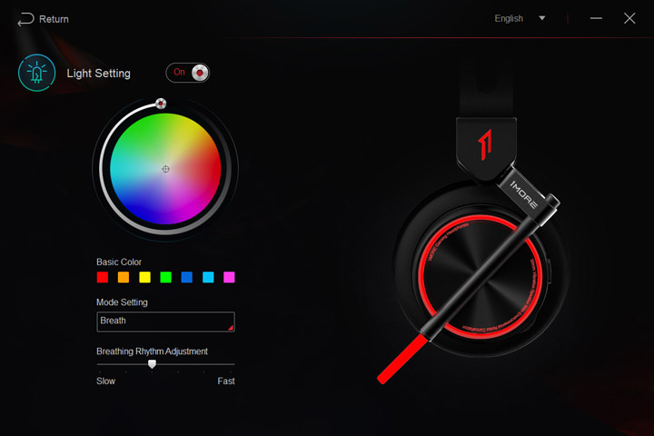 Второе подменю настраивает RGB-подсветку. Дают выбрать из четырех стилей свечения (дыхание, пульсация, постоянное свечение и пульсирующая смена цвета) и настроить скорость мигания. Третий пункт EQ Setting — местный эквалайзер. При желании его разрешают отключить, применить один из доступных пресетов или подкрутить вручную.