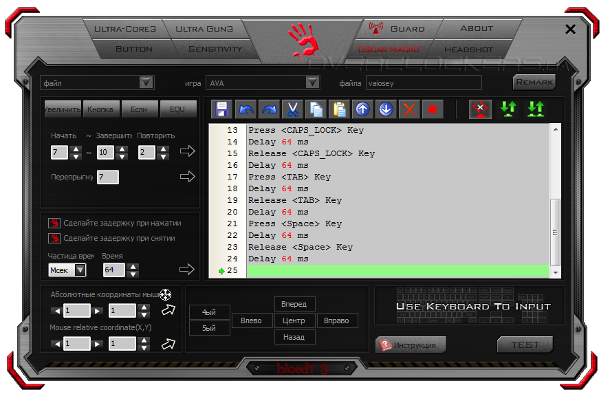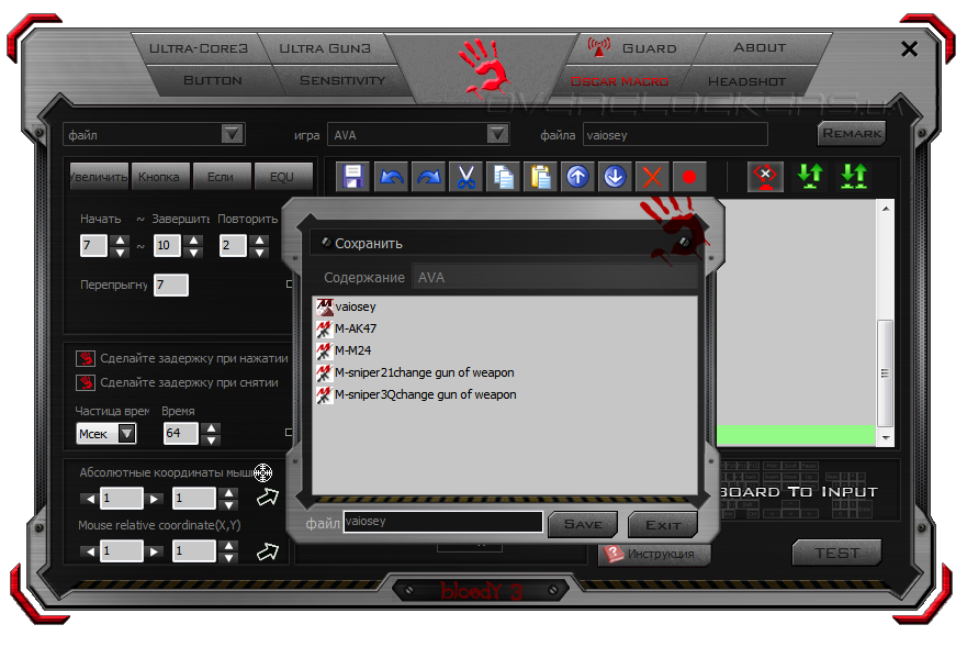 Запись сложных макрокоманд доступна на вкладке Oscar Macro Gun. Основным достоинством записи там макросов является колоссальный выбор параметров.