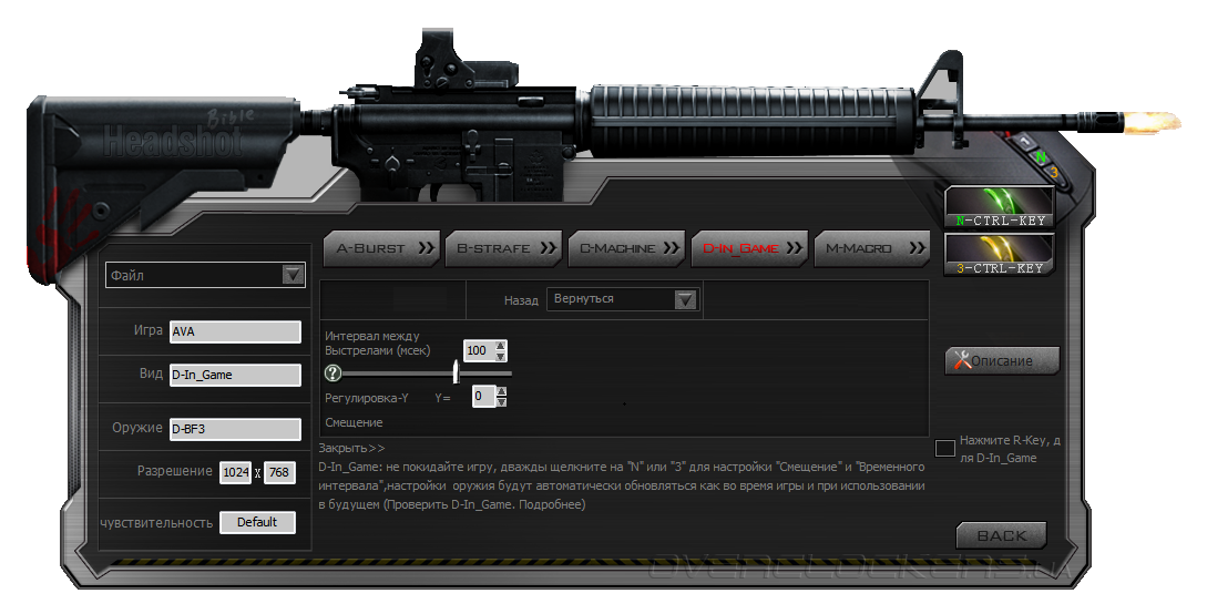 D-In Game ориентировано на снайперскую стрельбу. Здесь опять же настраиваются параметры смещения и временного интервала.