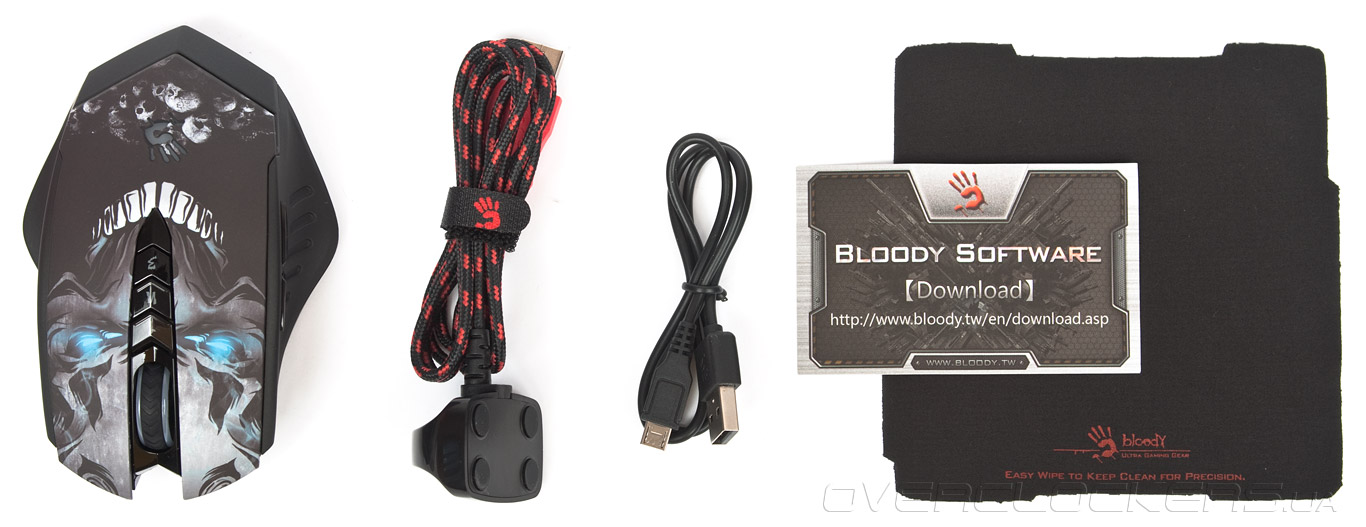 Несмотря на то, что подавляющая часть продукции компании A4Tech принадлежит к бюджетному классу, комплектация Bloody Zero Lag R8a также не смогла порадовать нас дополнительными аксессуарами. Итак, в комплект поставки вошли: