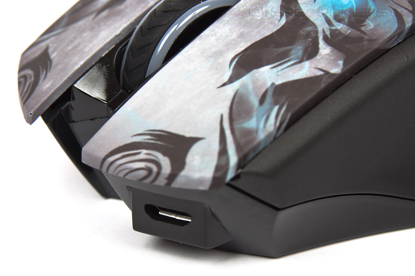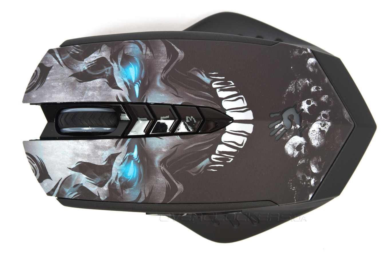 Внешнее оформление мыши полностью соответствует названию бренда Bloody. В отличии от предыдущих моделей, окрашенных в чёрные цвета, производитель решил придать Zero Lag R8a некую уникальность. Для реализации данной идеи, корпус был украшен эффектной аэрографией, покрывающей 90% поверхности верхней панели. Рисунок в виде черепа с призрачными глазами со стороны смотрится интересно и нестандартно.