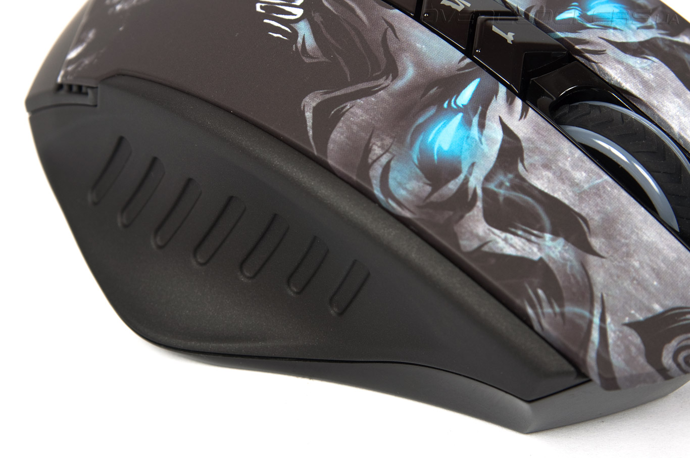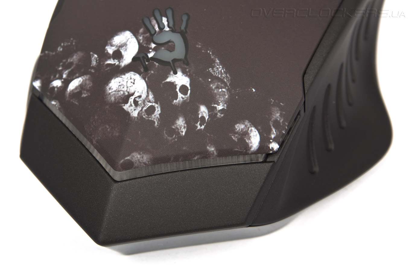 На левой боковине размещены две программируемые кнопки. Как ни странно, но инженеры Bloody решили укомплектовать переключателями только левую боковину. Большинство производителей игровой периферии устанавливает аналогичные переключатели с обеих сторон корпуса. Это делается намеренно, для удобства активации указанных кнопок левой/правой рукой.