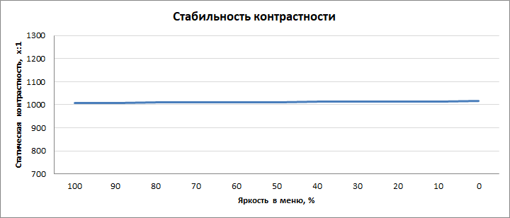 Средний коэффициент контрастности составил 1002:1 и остается стабильным при любом уровне яркости экрана.