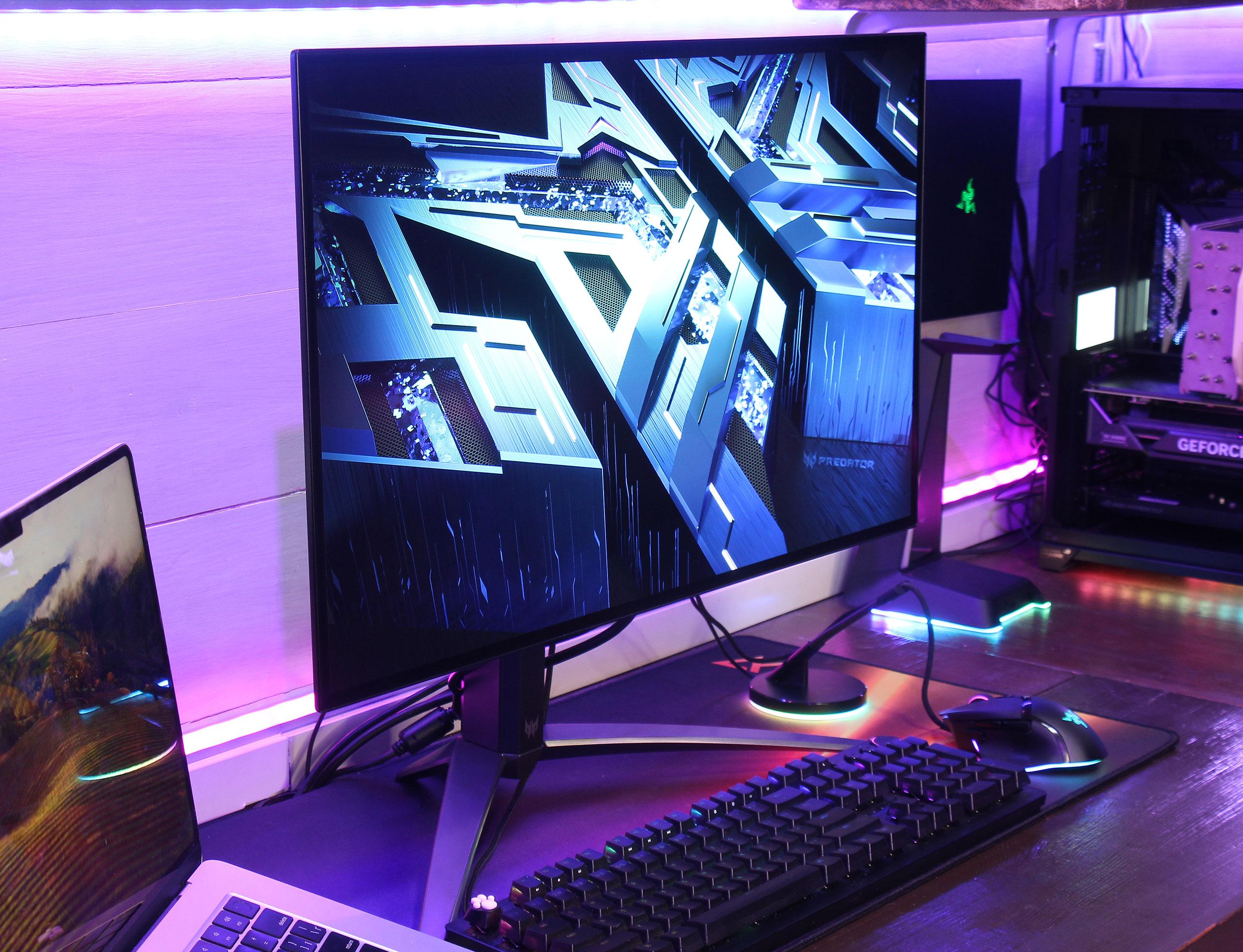 На первый же взгляд Acer Predator X27U, который мы рассмотрим, за достаточно немалые деньги предлагает вообще все, что можно желать от геймерского монитора: самый распространенный размер 27”, матрица OLED, частота обновления 240 Гц, интересный дизайн и некоторые дополнительные полезные возможности, как то встроенные динамики, крепление для веб-камеры и даже KVM-переключатель. Так что вопрос в тестировании стоит так — способен ли этот монитор обеспечить высокое качество всех этих возможностей?