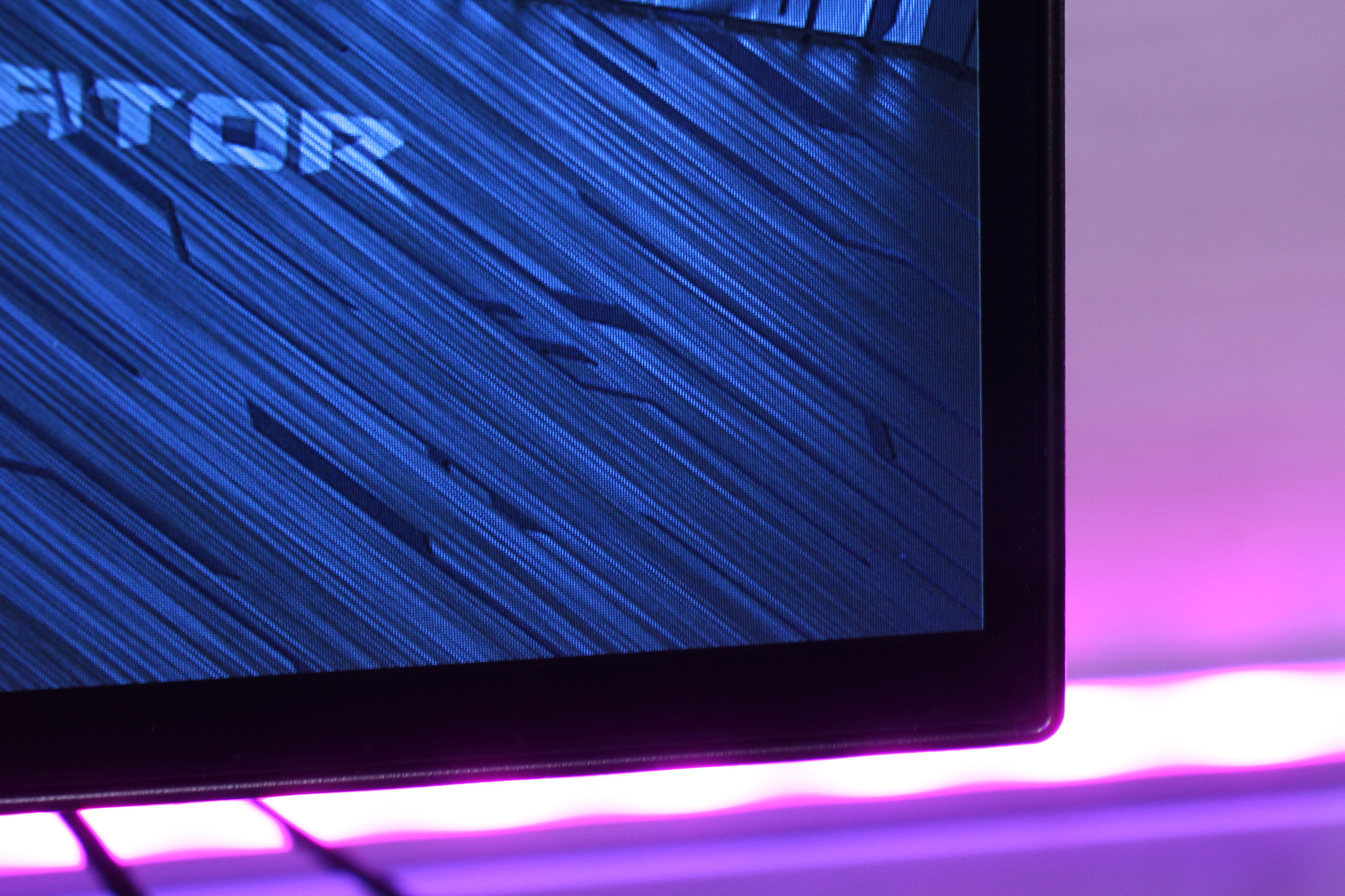 Как для представителя геймерской линейки Predator, выглядит X27U необычно — он балансирует между «космическим геймингом» и «дорогой лаконичностью». Вершина лаконичности — это как раз фронтальный вид. На нем нет даже названия бренда или серии, присутствует только нанесенный серый логотип Predator на ножке. Вся конструкция черная и пластиковая, кроме металлической ножки, окрашенной в темно-серый цвет (gunmetal grey, как его обычно называют).