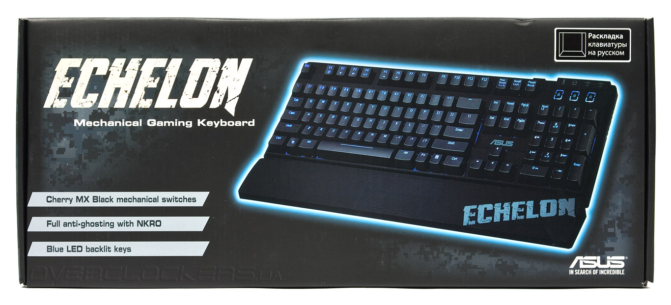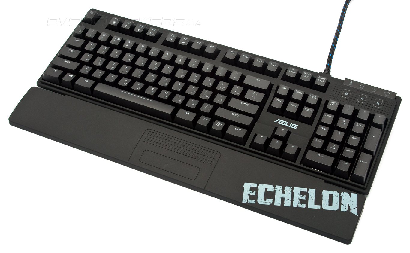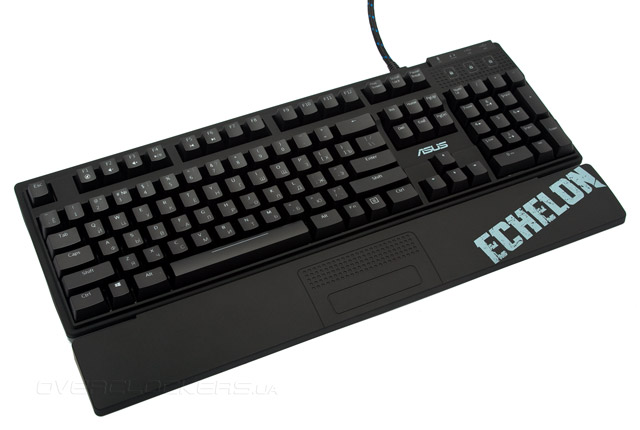Отправной точкой нашего знакомства с данным комплектом станет обзор клавиатуры Echelon Mech. Важно отметить, что модель является первой и пока единственной клавиатурой этого бренда с механическим типом переключателей. Кроме этого, она может похвастаться функцией распознавания неограниченного числа одновременных нажатий, управления мультимедиа проигрывателем, настраиваемой светодиодной подсветкой, эргономичной подставкой под запястья и многофункциональным USB-хабом.